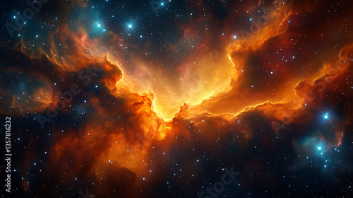 Fototapeta premium Bright cosmic clouds illuminate starry night in a vibrant nebula