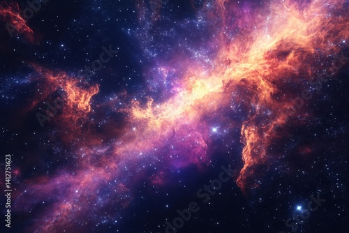 © YouraPechkin, Naklejka premium Bright cosmic nebula and swirling gases illuminate the night sky with vibrant colors