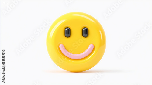 Fototapeta premium Bright 3D yellow smiley face element on a clean white background for cheerful...