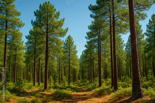 © AbstractAI, Fototapeta premium Bright daylight in a pine forest