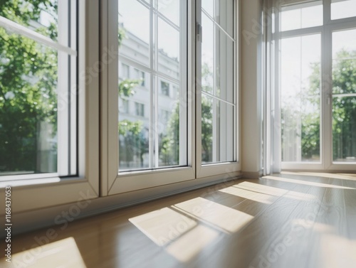 Fototapeta premium Bright Daylight Streaming Through a Sunlit Room with Large Windows