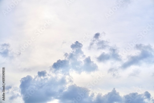 © Amanda Alamsyah, Obraz premium Bright daytime sky with fluffy gray clouds isolated on horizontal ratio outdoor environment background.