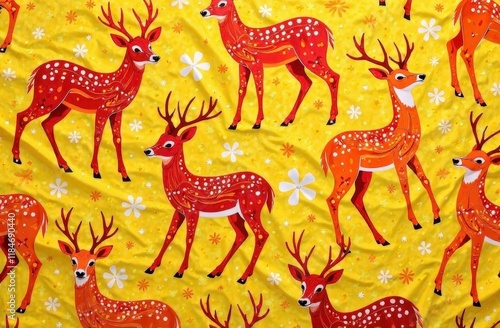 © Dmitrii, Obraz premium Bright Deer-Inspired Textile Design for Fall Accessories