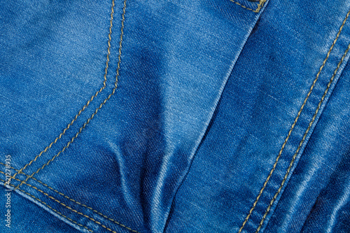 © Zuev Ali, Fototapeta premium Bright denim with a neatly stitched seam.