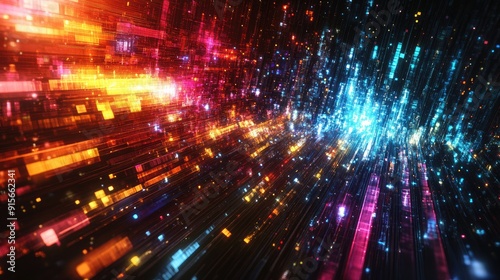 Fototapeta premium Bright digital glitch effect with colorful lines, tech abstract