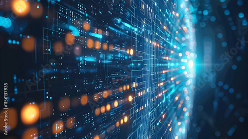 Fototapeta premium Bright digital network with glowing blue data points and an abstract...