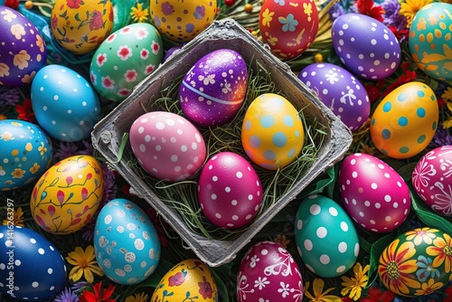 Obraz premium Bright Easter Eggs on a Festive Colorful Background