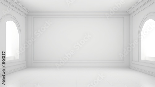 Fototapeta premium Bright Empty Monochrome Room with Arched Windows and Soft Curves
