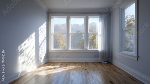 © S.Stock, Naklejka premium Bright Empty Room with Large Windows