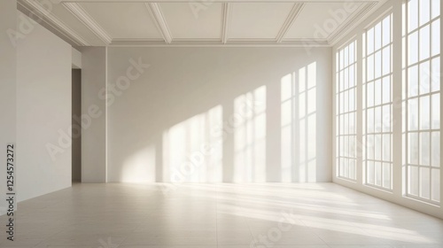 © Tuachan, Obraz premium Bright Empty Room with Large Windows and Soft Natural Light