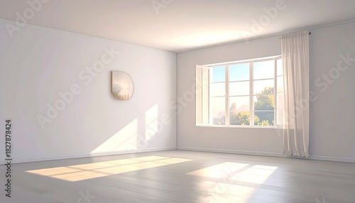 Obraz premium Bright, empty room with sunlight streaming through a large window