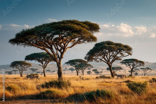 © Nang, Obraz premium Bright Expansive Grasslands Alive with Wildlife and Iconic African Scenery