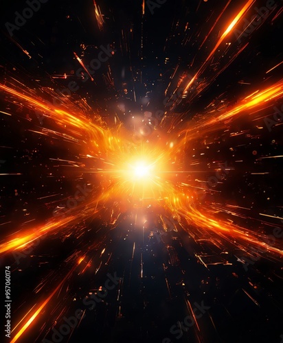 © Nipon, Fototapeta premium bright explosion orange and yellow lights
