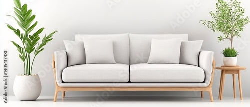 © Penchan, Fototapeta premium Bright family living room interior design rendered image modern aesthetics cozy environment natural light