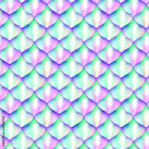 © ASIA, Fototapeta premium Bright fantasy scale vector background. Mermaid skin texture seamless pattern. Rainbow Dragon scales design.