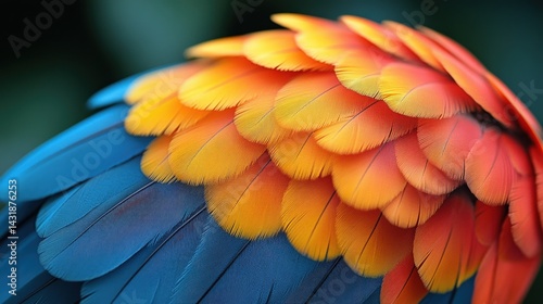 © Miramiska, Fototapeta premium Bright feathers of birds. Multicolored feathers of a parrot