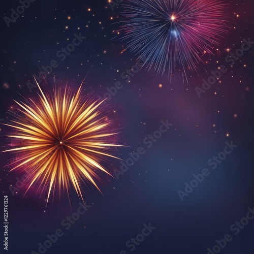 Fototapeta premium Bright fireworks light up a starry night sky with colorful explosions in a...