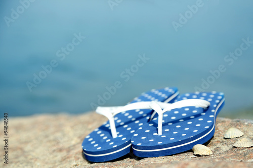 Obraz premium Bright flip-flops on stone, nature background