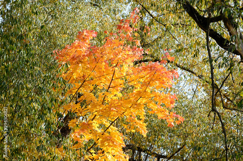 © Talulla, Fototapeta premium Bright foliage of maple tree on a sunny autumn day, natural background