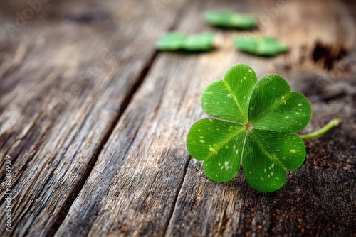 Naklejka premium Bright four-leaf clover on weathered wood