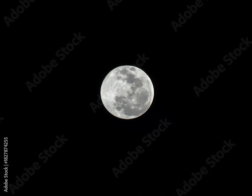Naklejka premium Bright full moon in a dark night sky, illuminating the lunar surface with detailed craters and textures