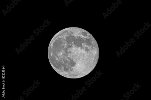 © AdobeTim82, Obraz premium Bright full moon isolated on black night sky with copy space