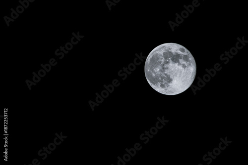 © AdobeTim82, Fototapeta premium Bright full moon isolated on black night sky with copy space