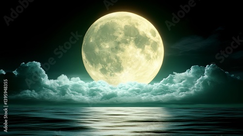 Fototapeta premium Bright Full Moon Over Calm Water with Dramatic Cloud Cover