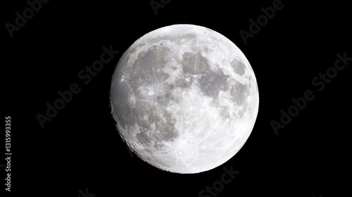 © Somporn Na Ubon, Obraz premium bright full moon shines against dark night sky, showcasing its craters and surface details