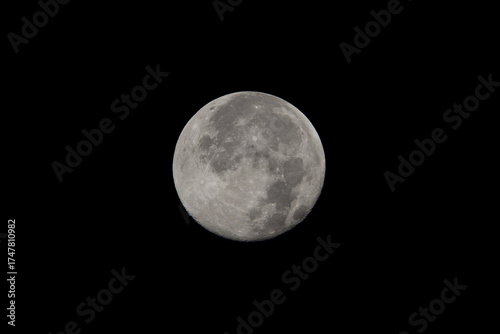 Fototapeta premium Bright Full Moon with Craters Against Deep Black Sky