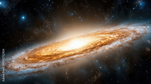 © siraphol, Fototapeta premium Bright galaxy with swirling clouds and luminous core, showcasing cosmic beauty and wonder
