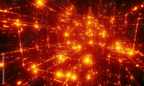 Fototapeta premium Bright glowing grid forms a network of orange lights.