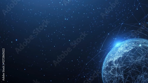 © OnuTH, Obraz premium Bright Glowing Planet Surrounded by Shimmering Stars in a Dark Cosmic Background
