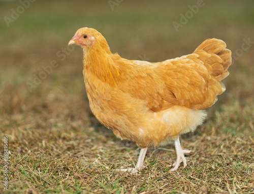 © Guy Sagi, Fototapeta premium Bright golden chicken hen on grass