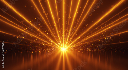 Naklejka premium Bright golden light bursts outwards, creating a radiant and energetic visual effect.