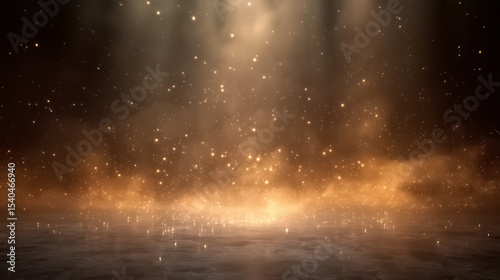 Naklejka premium Bright golden particles and mist rise from the ground in a soft glowing ambiance