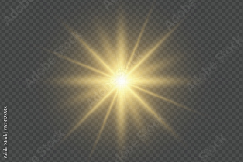 Fototapeta premium bright golden sunburst light effect. glowing rays on transparent background design