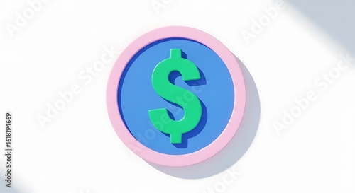 © MILON, Obraz premium Bright green dollar sign on blue and pink coin