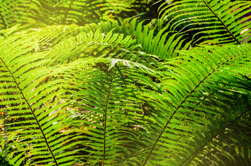 © Viktor, Fototapeta premium Bright green fern leaves texture, abstract exotic plant background