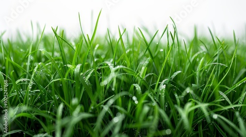 Obraz premium Bright green field, isolated on white, with soft grass blades. Ideal for fresh and natural design elements