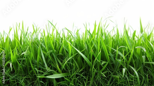 Fototapeta premium Bright green field, isolated on white, with soft grass blades. Ideal for...