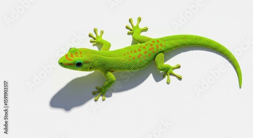 Fototapeta premium Bright Green Gecko Lizard with Red Spots on White Background