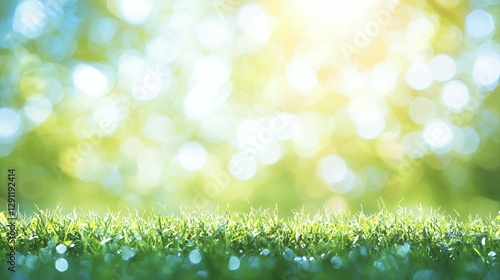 © Dr, Obraz premium Bright Green Grass Background with Sunlight Bokeh