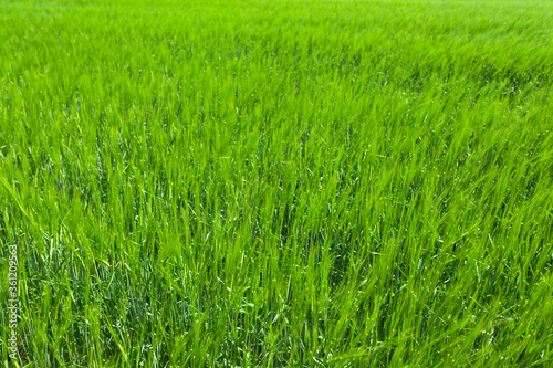 Obraz premium Bright green grass close-up, used as a background or texture, soft focus
