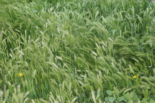 Obraz premium Bright green grass grows in spring