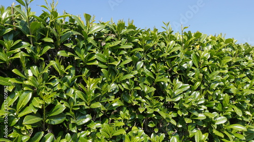 © David George, Fototapeta premium Bright green hedge with clear blue sky
