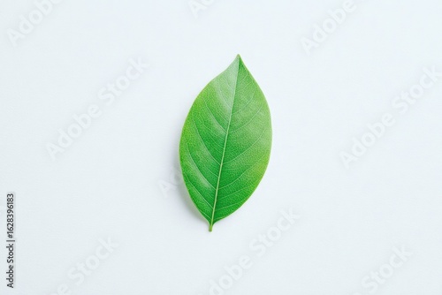 © Сергей Захаров, Obraz premium Bright green leaf showcasing detailed veins on minimalistic ligh