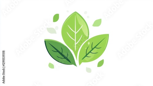 © AlfaSmart, Naklejka premium Bright green leaves with simple design on white background