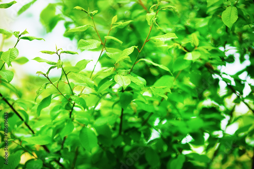 Obraz premium Bright green leaves with soft focus and blurred background. Fresh green...