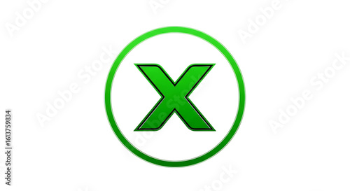 Obraz premium Bright green letter x inside an oval shape with a metallic glow isolated on...